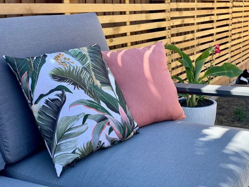 Choose neutral tones or grey outdoor cushions for garden seats or balcony chairs