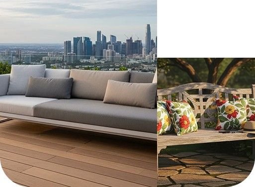 Not sure what size, thickness, or fabric to go for? We’ll visit your space and take exact measurements. We then show you a variety of outdoor-safe fabric samples. Our team will guide you on which foam density works best for your seating style.
